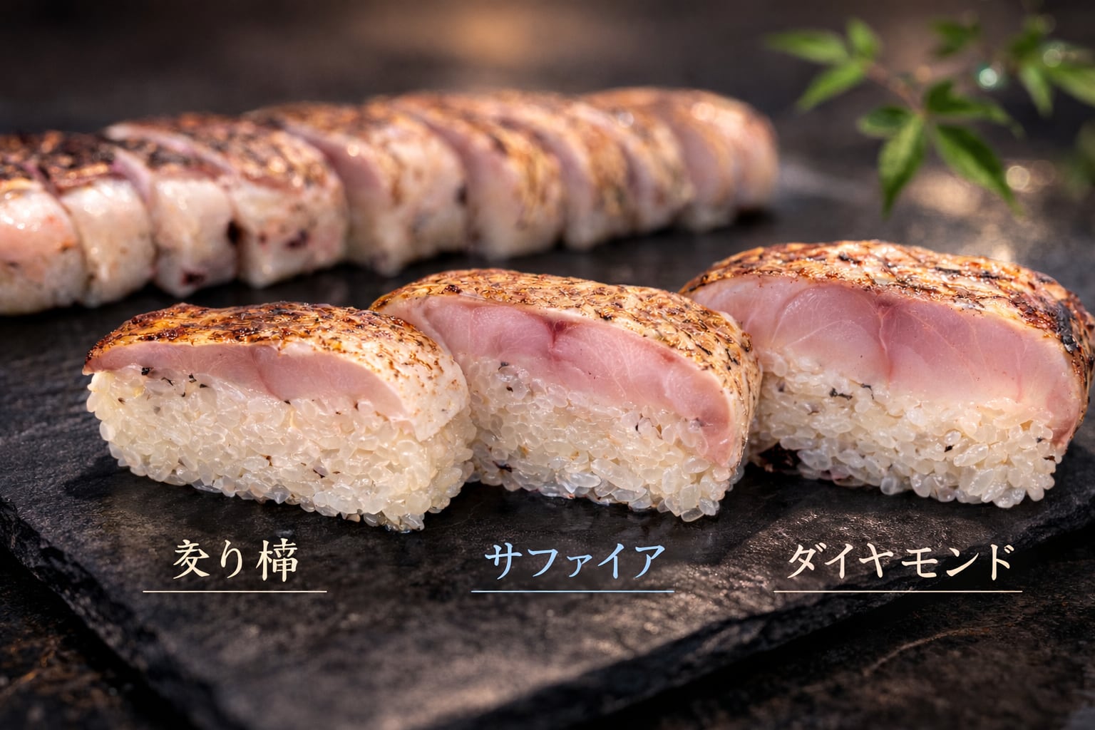 【600g超 特大天然のど黒】サファイア 炙り棒寿司|10切れ個包装|最高級贈答|赤坂一颯